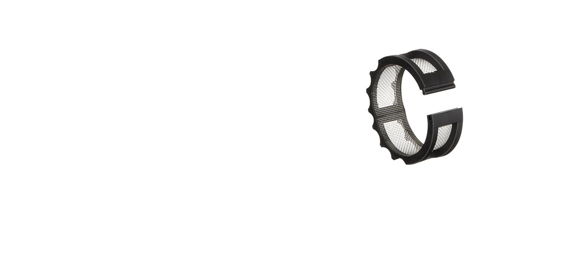 Offene Ringfilter aus Kunststoff für einfache Montage.